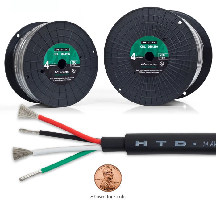 Our direct-burial cable is made of 14 gauge tinned 99.99% oxygen-free copper and includes a CL3-rated double-wall outer-jacket that is UL listed and 13mm in diameter. This cable will last a lifetime with minimal sound degradation.