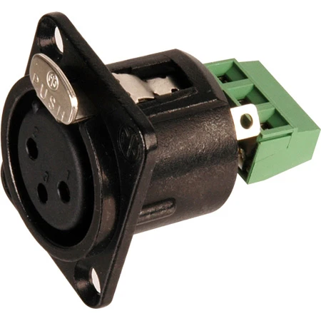 Manufactured with Neutrik components, these 3-Pin chassis mount models eliminate soldering for quick installs in the field and studio. “D-L-1” footprint. Black chrome shell with gold contacts. Mounts from front or back. Rear SCREW terminal model accepts 16 AWG to 30 AWG size wire and terminates with any miniature flathead screwdriver.