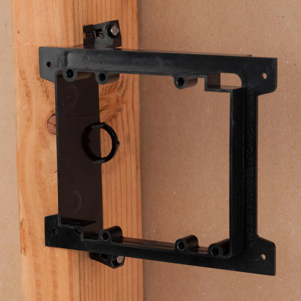 Double-gang, nail-in, pre-construction bracket for low-voltage devices. Install after framing, but before the dry-wall is installed.
