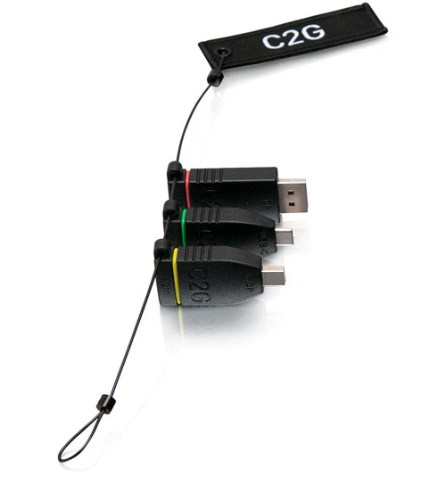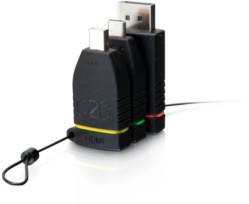 The Patented (US 11,444,419 B2) C2G 29878Universal 4K HDMI Adapter Rings are the perfect addition to conference rooms, huddle spaces, lecture halls, or classrooms to ensure that anyone can connect. The standard configuration includes the adapters to connect nearly any device to the in-room display while supporting up to a 4K video resolution. C2G offers various connection combinations that can include HDMI to DisplayPort, Lightning, Mini DisplayPort, Micro HDMI, Mini HDMI, USB-C, VGA adapters to meet connectivity challenges. If you need additional connectivity, C2G has recently launched USB-A to USB-C Dongle Adapters that support USB 2.0 (480 Mbps) data only transmission.