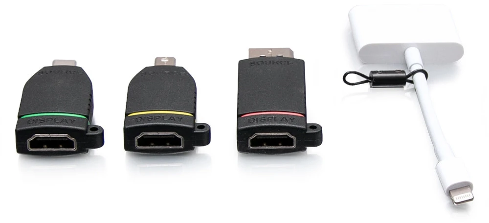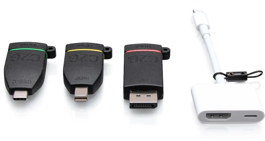 - The DisplayPort, Mini DisplayPort, and USB-C adapters are color coded, so no more frustration trying to find the adapter that you typically use for your laptop