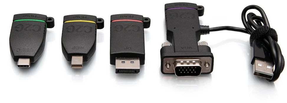 - The DisplayPort, Mini DisplayPort, and USB-C adapters are color coded, so no more frustration trying to find the adapter that you typically use for your laptop