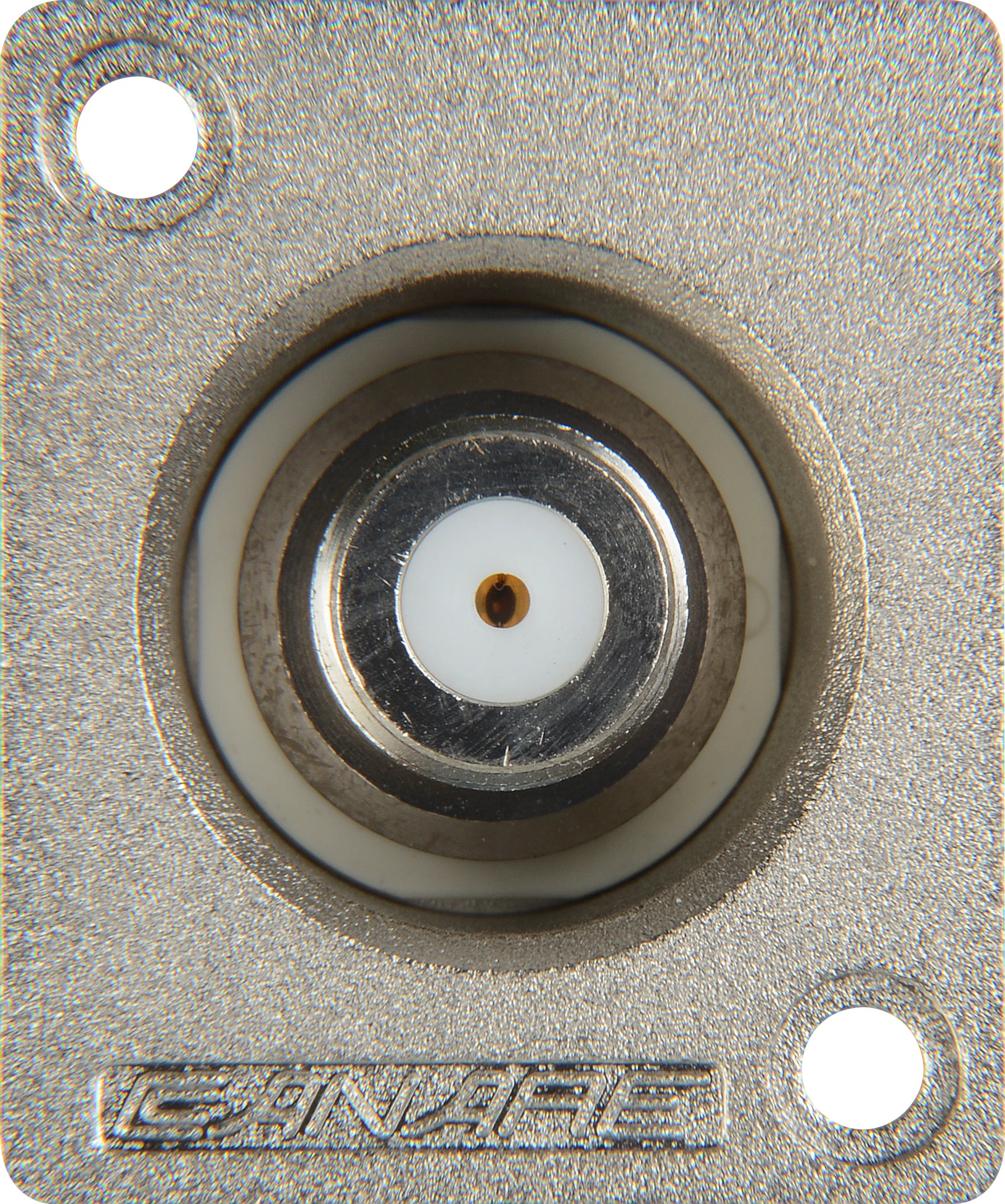 DAMAGE PREVENTING BULKHEAD CONNECTOR ! Because ordinary panelmount BNC connectors are precariously exposed, they offer little protection from physical damage. To solve this problem, Canare has developed a unique recessed panelmount design that effectively protects the housed connector. (Mounting flange is the same size as a Cannon XLR-F-77 connector).
