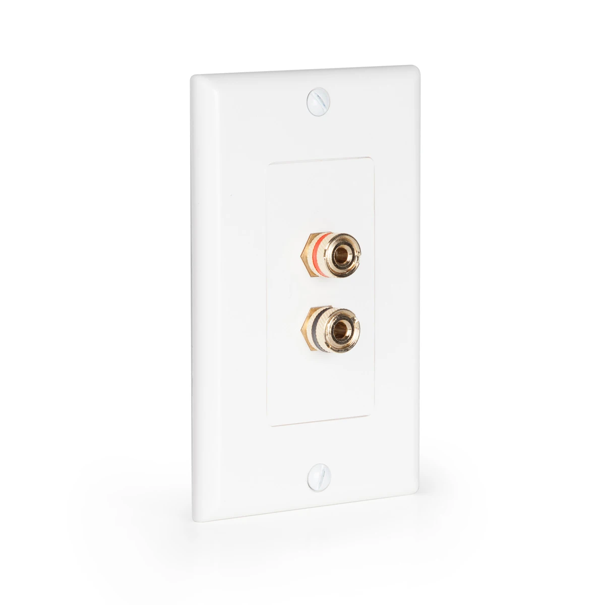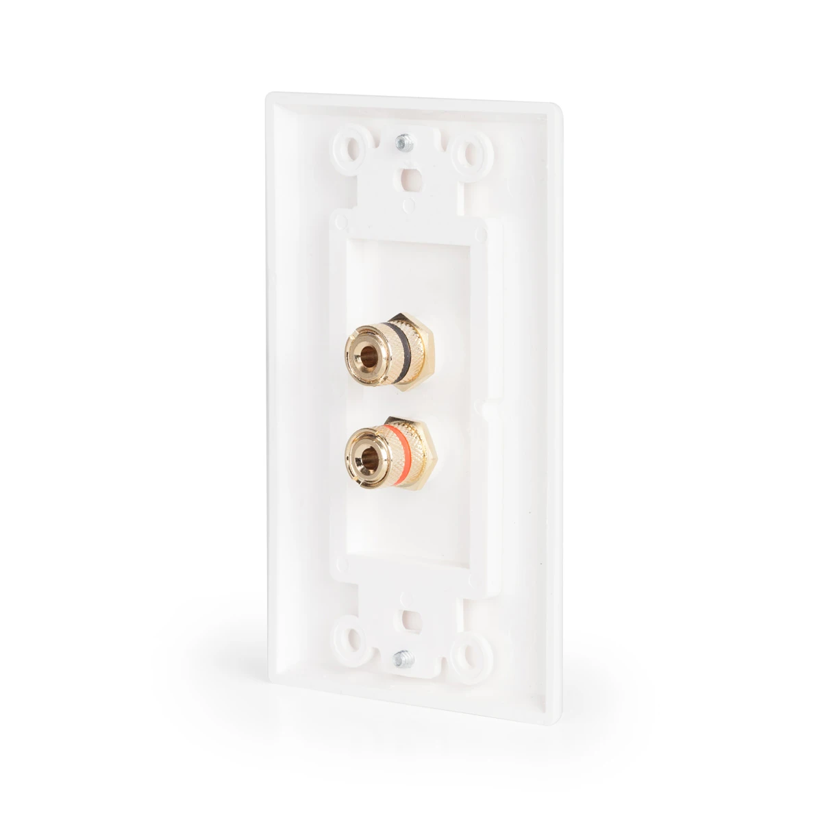 We include a free single gang wall-plate, but it is possible to combine multiple Decora-style binding post plates into your own multi-gang wall-plate.