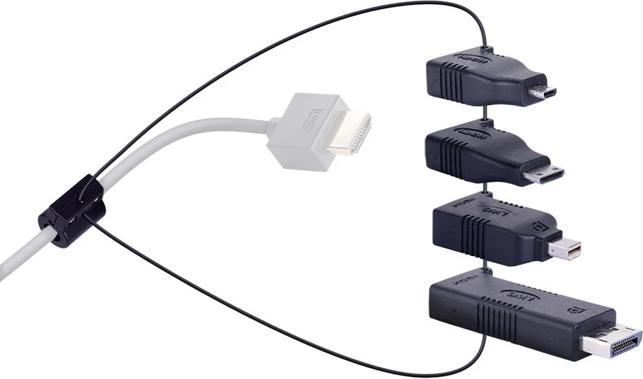 - Security loop with faux ferrite and 4 adapters to HDMI