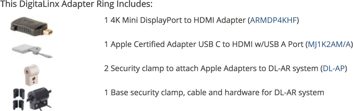 - DL-AP2 Security clamp to attach Apple Adapters to DL-AR system (DL-AP)