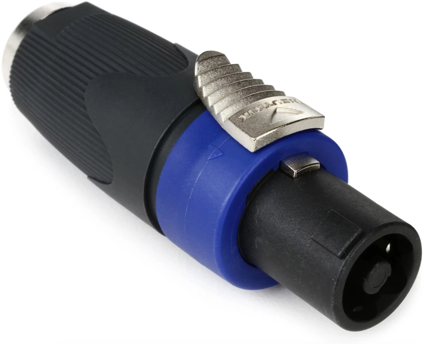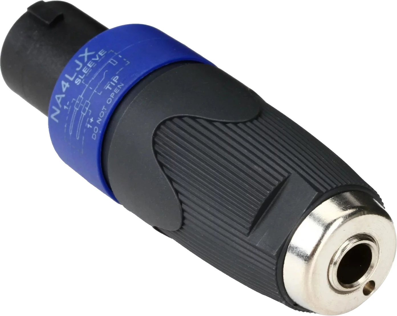 Adapter – NL4FC to 1/4 Inch 2-pole jack, wiring: +1 to TIP and -1 to SLEEVE – pre-wired. speakON NL4FC – 1/4” mono jack adapter