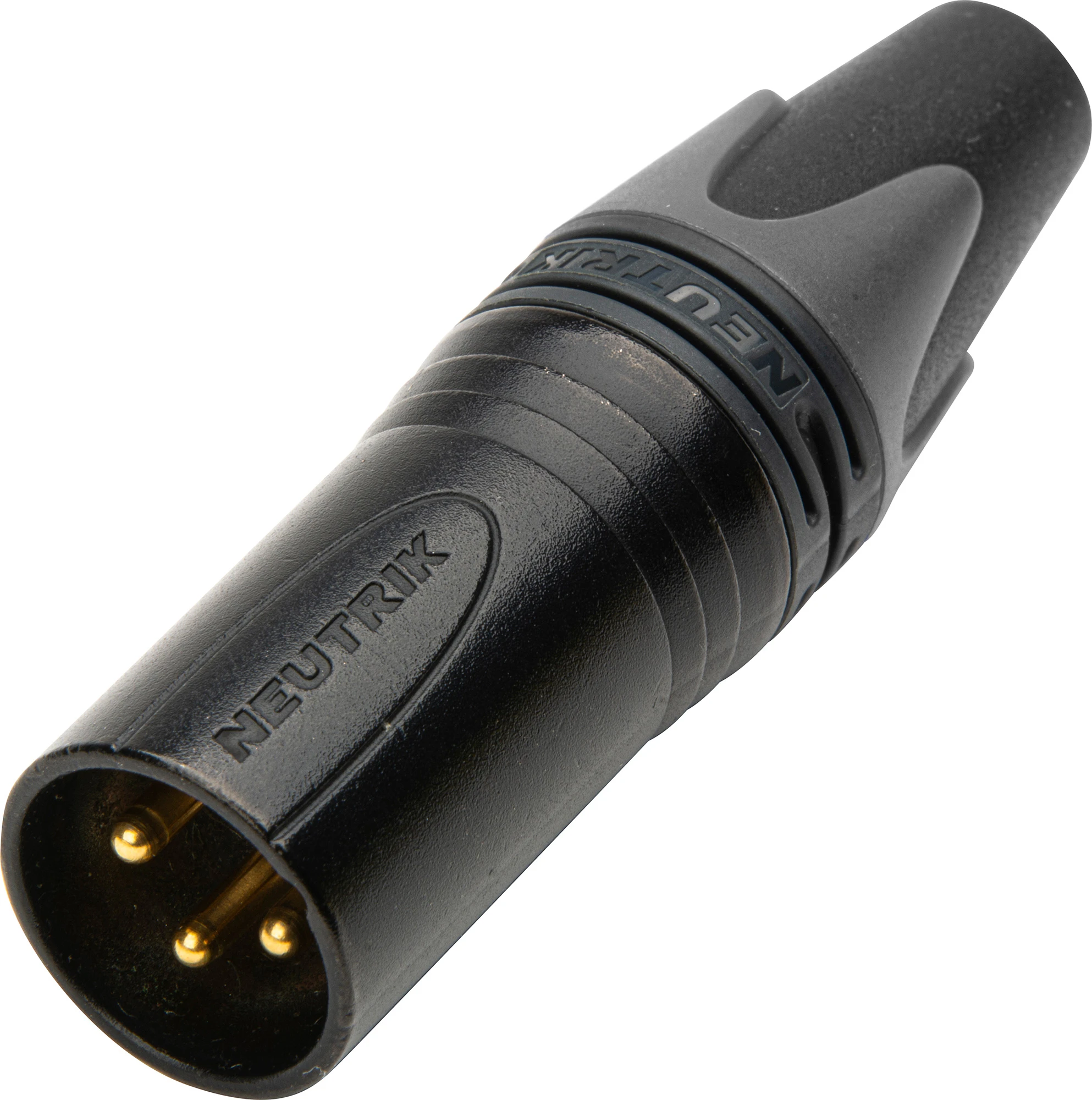 Neutrik NC3MXX-BAG 3 pole male cable connector with black metal housing and silver contacts in a Bulk 100 pack.