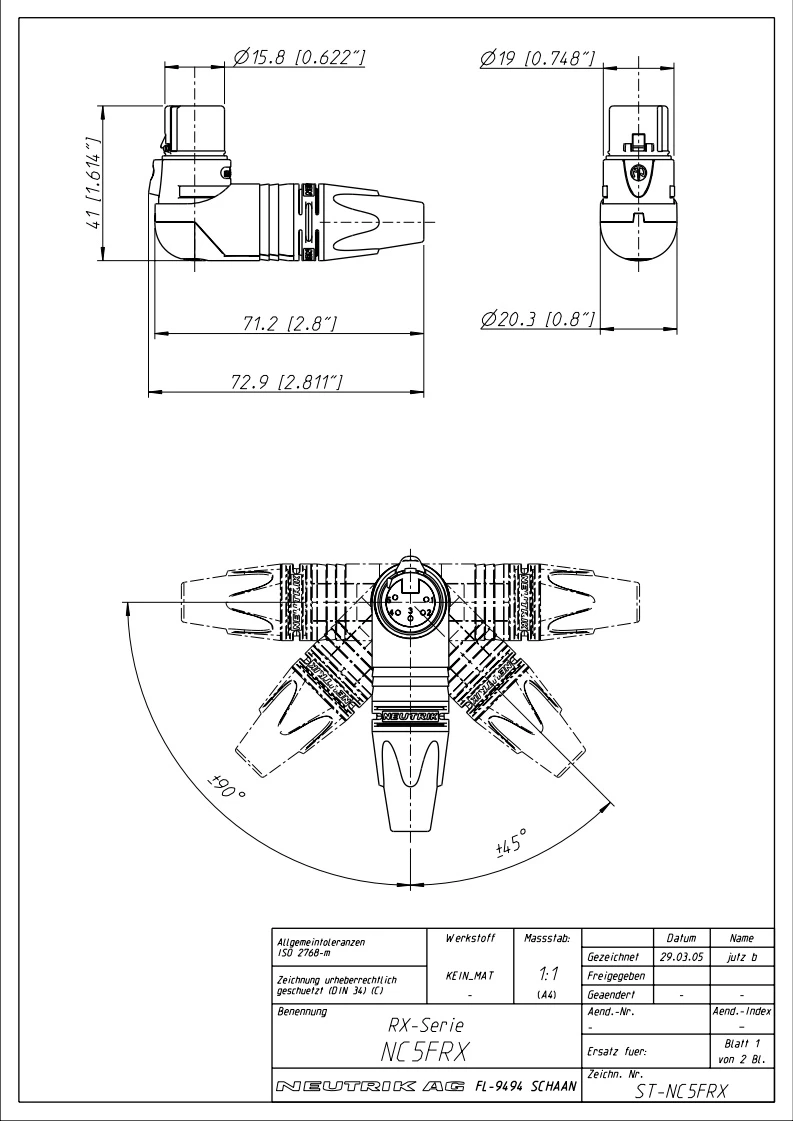 The RX Series is the right angle version of the XX cable connector series. The successor of the RC series offers several new features which make it more reliable, easier to assemble and improves contact integrity as well cable strain relief.