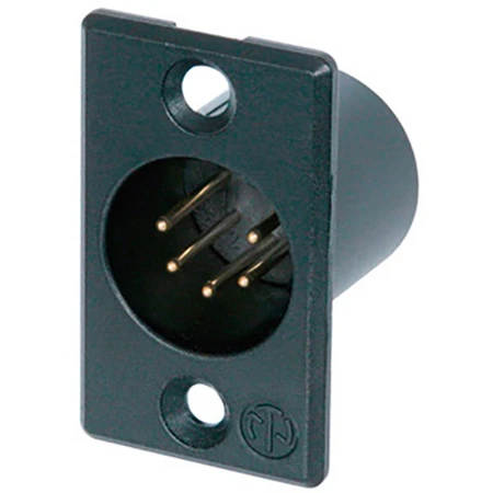 Smallest available traditional style metal panel mount connector with large solder cups for ease hard wiring. NC5FP-15 pole female receptacle, solder contacts, Nickel housing, Silver Contacts. NC5MP5 pole male, solder contacts, Nickel housing, Silver Contacts. NC5FP-B 5 pole female, solder contacts, black metal housing, Gold Contacts.