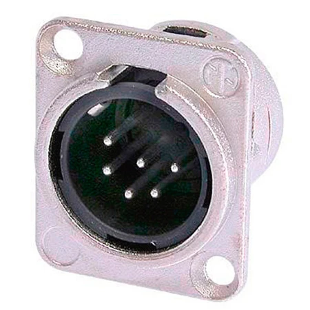 6 pole male receptacle, solder cups, Nickel housing, silver contacts. Equivalent to switchcraft pin layout.