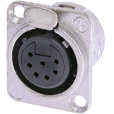 The Neutrik NC7FD-L-1 is a 7-Pole female receptacle with solder cups & Silver Contacts. It has a Nickel Housing and is a standard Universal D-size metal body XLR panel mount. UL recognized component.