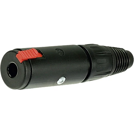 The 3 pole phone cable jack in-line version provides stable and secure connections where accidental disconnect or shock and vibration may occur. It latches with standard A-gauge mono or stereo plugs. Plug locks-in automatically when mating and unlocks only by pressing red release tab. The Neutrik NJ3FC6-B is a professional locking 1/4″ cable jack for secure in-line connections. It features a black metal housing, silver contacts and provides excellent cable protection.