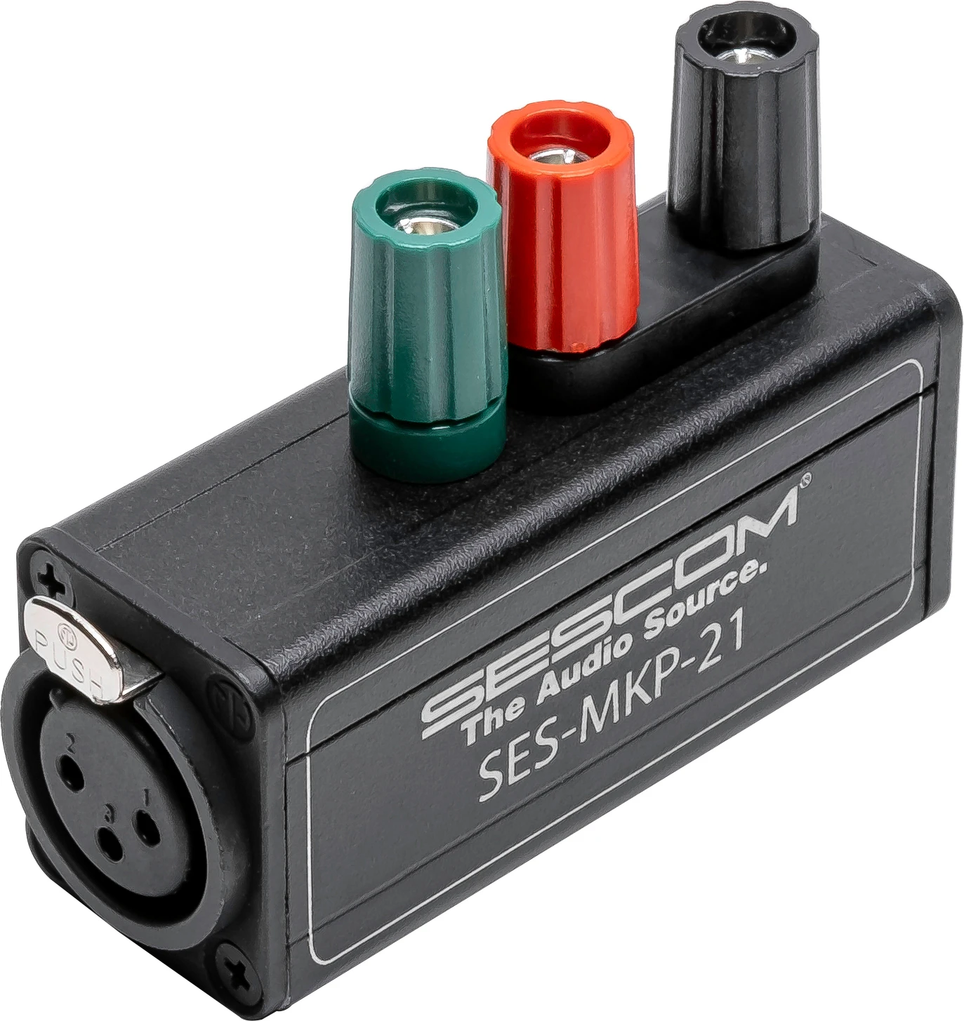 Quick access of your bare wire to the world of XLR. Ideal for interfacing telco. Posts are red, black and green. When used with an XLR “Y” cable this device will be a true inline “tap”.
