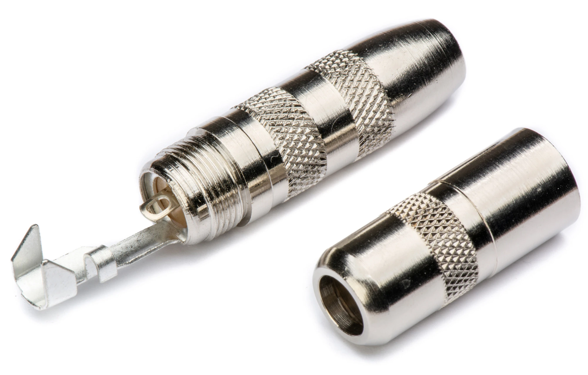 Extension Jax® jacks are connected to the end of a cable. 2- and 3-conductor jacks mate with standard commercial phone plugs, and have a sturdy cable clamp strain relief, knurled shielded or molded black plastic handles, and a screw type solder terminal. All internal parts are interlocked. Note: See locking phone plugs section.
