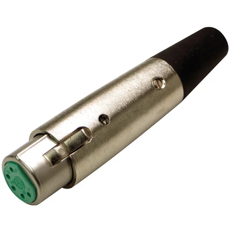 The original A Series premium XLR connector with adjustable dual pressure plate cable clamp, flexible strain relief, and removable pin insert. The Switchcraft A5F is a 5-Pin XLR Female Cable Mount Connector with Silver Pins & Nickel Housing.