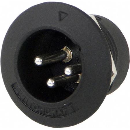 This Switchcraft B3MB B-Series Circular Panel Mount with nut is a 3 Pin XLR Male with silver pins and a black finish.