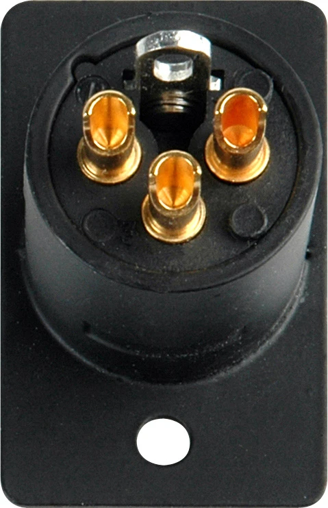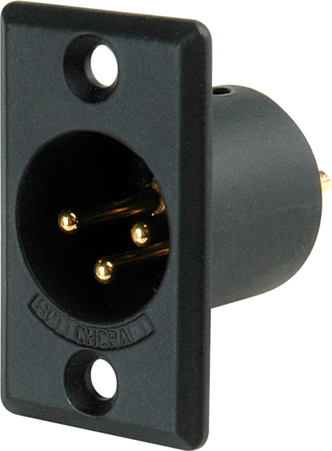 The D Series are panel mounted rectangular XLR connectors available in either textured or optional smooth brushed finishes. These are the male options.