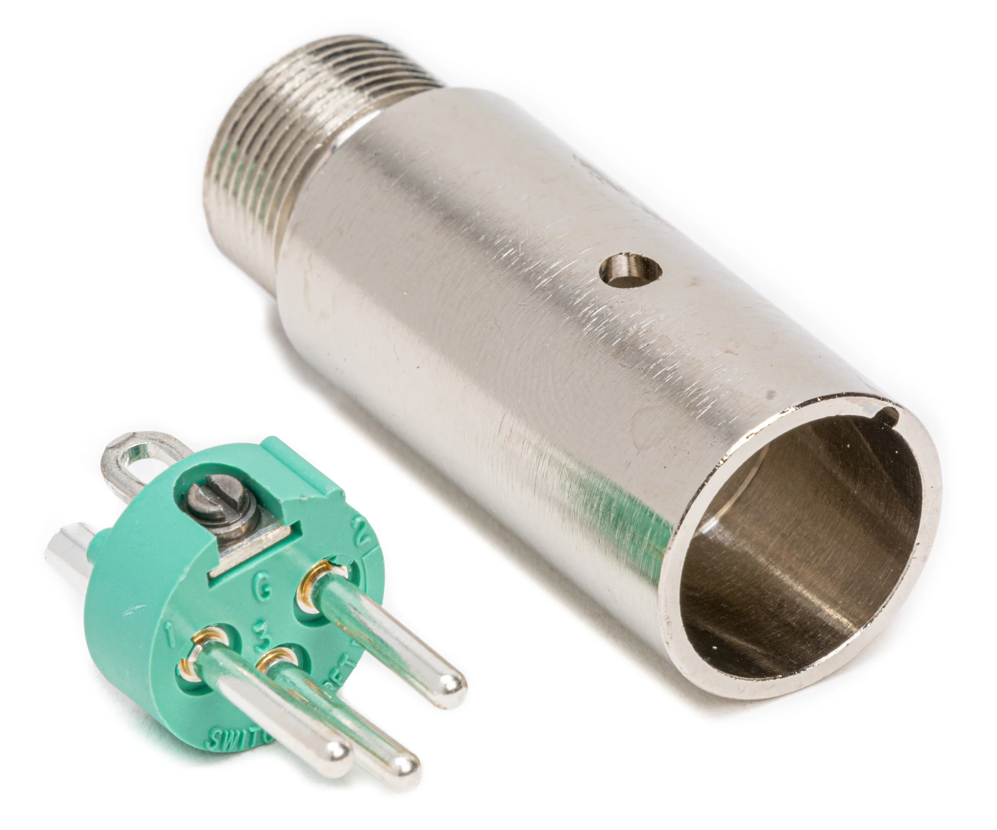 Male plug for gooseneck mount. Fits standard gooseneck with internal 5/8-27 thread. Use on gooseneck with microphone plug on opposite end. Plugs directly into female receptacle. (Gooseneck not supplied.)