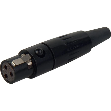 The Switchcraft TA3FBX is aTini-QG “Mini XLR” 3 pin female cable mount connector with silver pins, in Black.