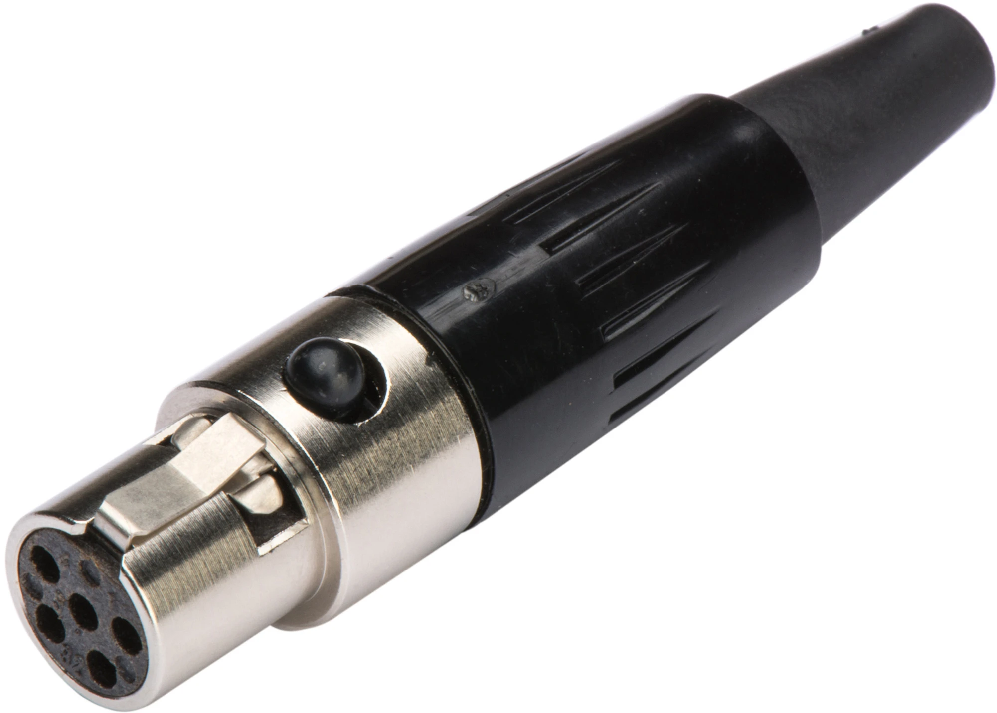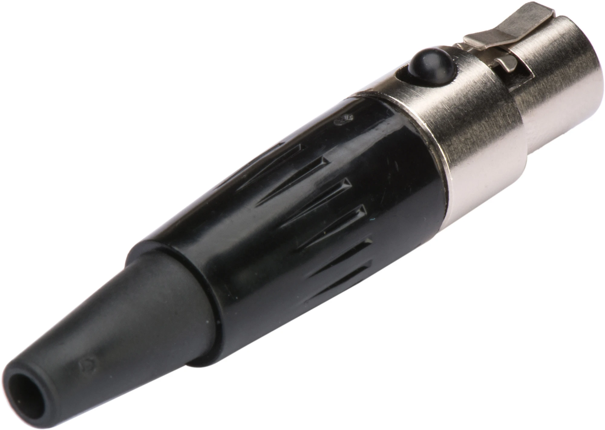 Switchcraft TA5M and TA5F connectors are streamlined, miniaturized with nickel-plated metal and contrasting black plastic parts. Designed to be light weight and unobtrusive.