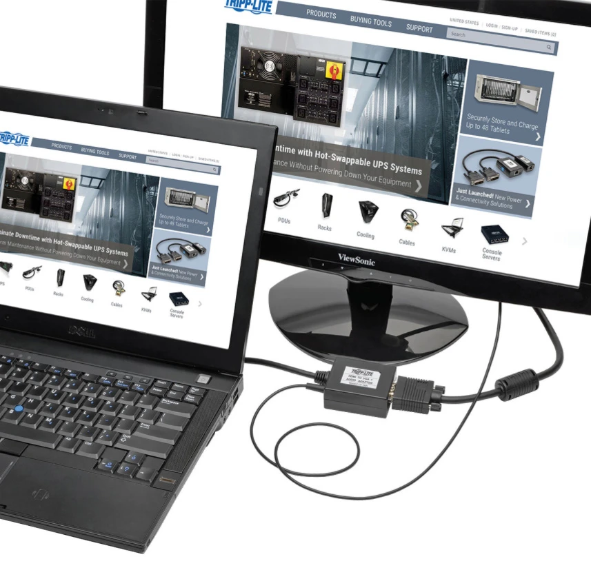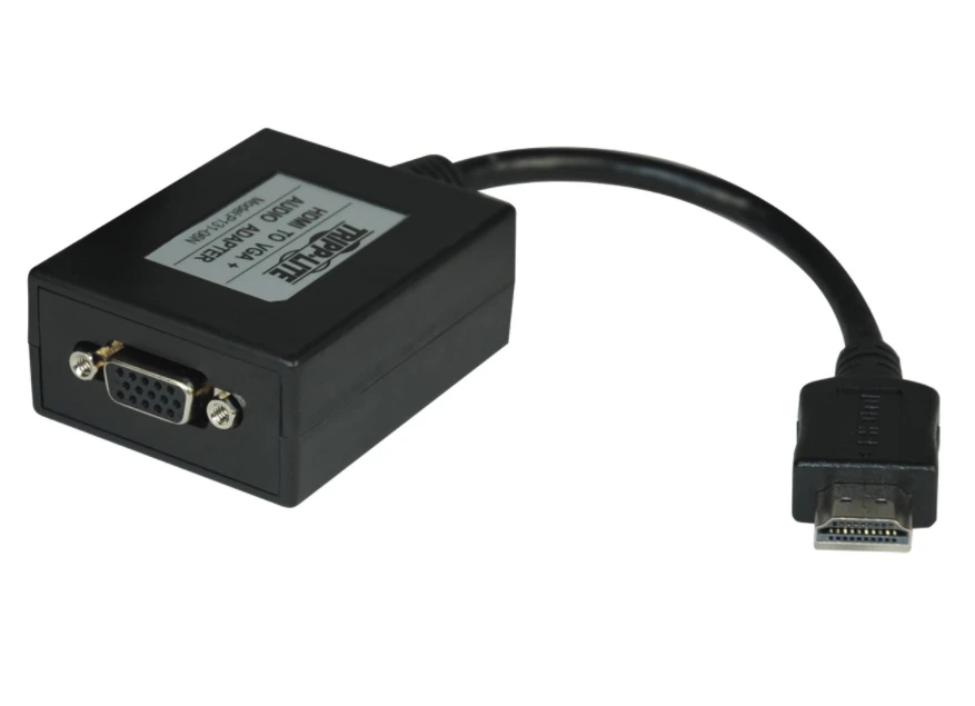 Tripp Lite’s P131-06N HDMI to VGA Audio/Video Adapter allows you to connect a PC, laptop or ultrabook with a HDMI output, to a VGA display or projector and 3.5 mm. Mini Stereo speakers. Supports video resolutions up to 1920×1200/1080P (WUXGA). Small, compact design, no external power required, completely Plug-and-Play.