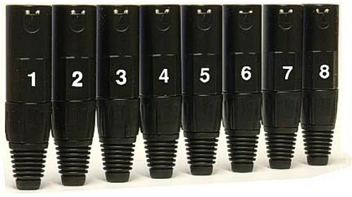 Inline XLR Male connector Set – features color coded strain reliefs and a unique labeling area.